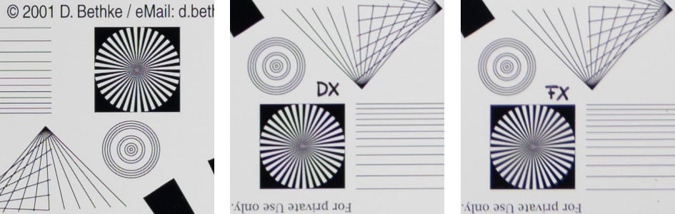 The crops below the main image are from the center, DX-corner, and FX-corner resized to make them comparable across all my reviews.