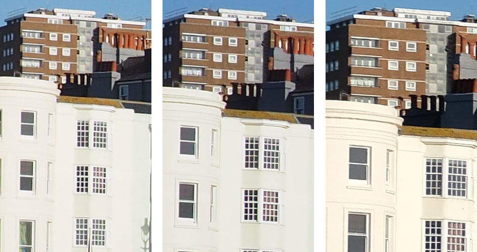 Starting with the first two columns which compare the Mark I and Mark II versions of the OMD EM1, you’ll have to look very closely to spot any additional detail from the new model. It’s most noticeable in the finest grills, railings and signage, and easiest to see in the fifth row, but it remains subtle to say the least. Of course this is just one comparison using JPEGs and while the lens is high quality, it is an ageing model. But the bottom line is the OMD EM1 Mark II’s extra four Megapixels over the original model aren’t going to make a huge difference in real-life resolving power. What does make a difference between the old and new models though – under the right situations – is the Hi Res capture mode on the Mark II. If the subject stays static during the capture period, and you’re careful with your technique (which includes using a tripod, a razor sharp lens at an optimal aperture and a timed delay), you will capture an image with genuinely more detail. I have examples of this in the main review.