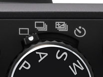 The GF1’s various drive modes are selected using the switch around the main mode dial. With Continuous, Bracketing or Self-timer selected, the options change in the super-imposed Q.Menu.