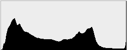Above you can see samples complete with Histograms showing the same composition taken with Intelligent Exposure Off, then set to its maximum High option – and as you can see, the two images look essentially identical. Certainly there was no brightening of the dark areas or greater protection for those which had become saturated. Of course you may enjoy greater mileage with different subjects.