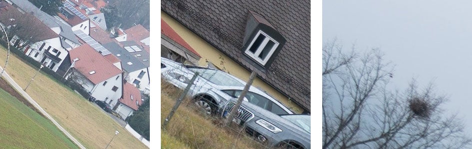 Following is an overview of the wide-open performance at different focal lengths. You can jump to the detailed results at different apertures by clicking on the crops of the respective focal length. As usual I have selected the diagonal that provided the better corner results as almost any lens is a bit decentered. During the period of testing atmospheric conditions were dismal. To compensate a bit for the fog I increased contrast for the center crops. The large originals are unretouched.