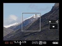 At any time during the Quick or Live AF modes, you can press the magnify button to show a 5x view, then a 10x view. The 50D will zoom-in on wherever the white frame is positioned on screen, which can be moved before or during using the joystick. At 10x, the EOS 50D shows an area that’s one tenth the width of the full image as you’d expect, but then scales this 475 pixel wide crop to fill the 640 pixel width of the monitor. So the 10x mode actually appears to be operating at greater than 1:1 magnification, or close to 133%.
