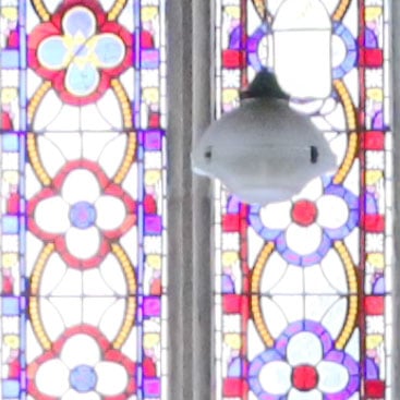 The result shown above is more impressive than my earlier tests with the 650D and it looks like Canon has improved on the HDR processing to retain more highlight detail as well as making a significant improvement in the shadows. The crops above from the backlit stained glass window show markedly improved detail in the highlights. You don’t need crops to see the improvement in the shadows which is most obvious in the pews in the bottom left corner and the organ top right. The histograms provide confirmation of the degree to which the highlight and shadow detail has been recovered.