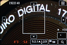 In a nice upgrade over the EOS 60D, the EOS 70D offers on-demand LCD graphics in its optical viewfinder, including the active AF points and an optional alignment grid. An optional simple icon in the lower middle of the frame can also indicate if the camera is level or tilted to one side or the other, but not by how much, while three additional icons in the upper middle can optionally indicate the AF area mode. Note Nikon’s D7100 also offers on-demand LCD graphics in its viewfinder, again including an optional alignment grid, but in addition dedicated scales on the right and bottom sides to act as a dual-axis virtual horizon. The Olympus OMD EM5’s electronic viewfinder can of course overlay a multitude of colour graphics including a dual-axis level or live histogram.