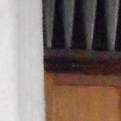 The results from the Canon IXUS 105 / SD 1300 are very good in their own right and compare very favourably with the results from the other two cameras. Quite often in very low light situations compacts are prone to underexposure and it can be difficult to see much detail in the crops which are taken from a quite poorly lit central part of the frame. In this case though, if anything, the IXUS 105 / SD 1300 has slightly overexposed the scene, burning out the detail on the white pillar in the foreground.