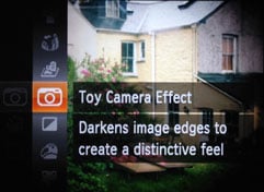 You can also select individual scene modes from the mode menu and as well as the usual Portrait, Low light, Snow, and Fireworks options you’ll find the composite Handheld NightScene mode (more about that on the noise results page), High-speed burst and Smart Shutter mode, which uses face detect to automatically take pictures when people smile, or activate the shutter with a wink. Lastly, the shooting mode menu includes the creative filter effects that will be familiar to anyone whose bought a Canon compact in recent years. They include Fish-eye Effect, Miniature Effect, Toy Camera Effect, Monochrome, Super Vivid and Poster Effect.