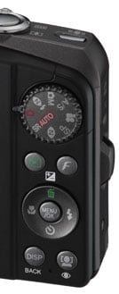 The mode dial has the same options as the earlier F50fd, including the combined Aperture / Shutter Priority setting, although one of the scene preset positions has been swapped for the camera’s new Scene Recognition Auto mode. We’ll go over each of the modes later in the review.
