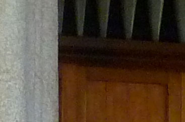 The keen-eyed amongst you will notice that the first crop in the series, taken at 100 ISO is quite badly underexposed, and the 200 ISO shot is also a little underexposed. The reason for this is the JZ300’s slowest available shutter speed range in Program mode is 1/4 of a second. Slower speeds are available in some of the scene modes like Night, but that isn’t going to help here. If you like to shoot interiors at slow shutter speeds with a tripod, this is something you’ll need to consider and may rule the JZ300 out. It makes it difficult to make an assessment of the noise levels at these lower ISO settings, but from what we can see there’s little evidence of noise in these crops, though the detail in the stone column on the right is on the soft side.