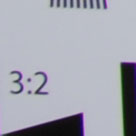 ![]() | To measure and compare purple fringing caused by lens chromatic aberrations and sensor blooming, we photographed a high contrast test chart using each lens set to its shortest and longest focal lengths with the aperture wide open. The crops are taken from the upper left corner of the chart and presented here at 100%.All four lenses perform similarly here, exhibiting a little coloured fringing in their extreme corners whether zoomed-in or out. |