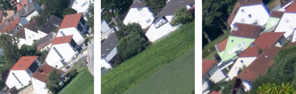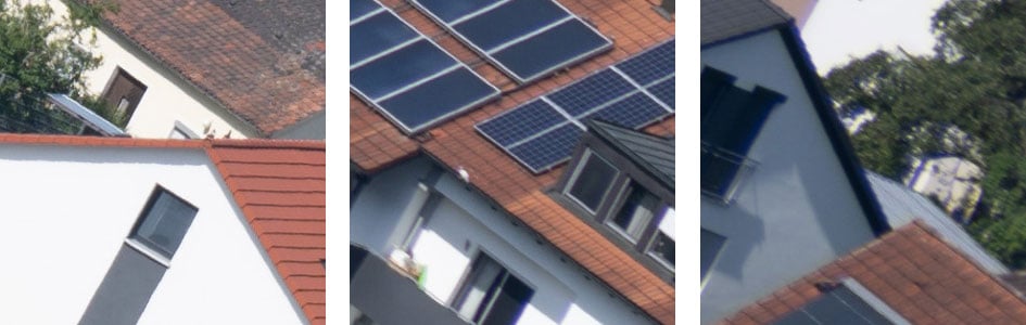 The Siemens-star test-targets are shot at a distance of 45x focal length (i.e. at around 3m for 70mm focal length). But performance of lenses also depends on the shooting distance. Therefore I present another series of test-shots of a city around 1 km away. Processing was done in Lightroom 9.2/CRAW 12.2 from RAW to Adobe Color profile with the built-in lens profile compensating CA and vignetting. Noise-reduction is set to 0, sharpening to 50/0.5/36/10, with no extra tone, color, or saturation adjustment. I used manual focus at the largest aperture and did not change focus for other apertures. All shots were made at ISO 100 and image stabilization switched off.