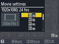 The D3100 offers five movie quality options which can be adjusted in any mode: 1080p at 24fps, 720p at 30, 25 or 24fps, and a 640×424 option at 24fps; pros will be relieved to discover the 24 and 30fps modes actually record at 23.976 and 29.97fps to match other pro equipment, but unlike Canon’s 550D / T2i upwards, there’s no additional options to record 1080p at 25 or 30fps, nor 720p at 50 or 60fps.
