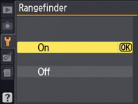 An interesting feature inherited from the D60 and D5000 is the Rangefinder option, enabled in the Custom Function menu. This uses the exposure compensation scale in the viewfinder (but not on the main screen) to indicate focus distance while manually focusing. As you approach perfect focus, the scale reduces to just two markers either side of zero.
