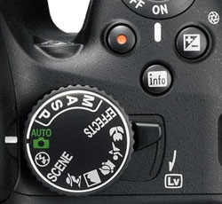 The earlier Live View button has been swapped for a new spring-loaded lever around the mode dial, and a new dedicated record button positioned by the shutter release. The mode dial itself is identical to the D5000, but one of the scene presets has been switched for a new EFFECTS position, which as its name suggests allows you to access a variety of special effects, more of which later.