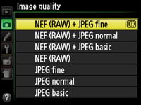 Running down the right side of the screen are the current quality, white balance, ISO, release mode, AF mode, AF area, metering mode, bracketing and Active D-Lighting settings. To adjust any of the settings, simply press the ‘i’ button in the bottom left corner. This highlights one of the settings in yellow after which you can use the four-way rocker to highlight the desired option before clicking OK to see a screen of relevant options; each option is accompanied by a thumbnail image illustrating how or where you might use that setting.