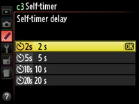 Set the release menu to Self Timer and you can choose from the same 2, 5 10 or 20 second timers as the D500 before it. Like its predecessor you can also set the D5100 to take multiple shots once the countdown is complete.
