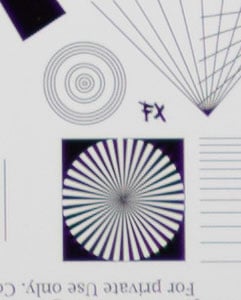 From the charts the new lens should perform better than the old one. But the new design has a little problem with astigmatism at very fine structures (S30/M30) between 4 mm and 14 mm from the center. But let’s see how this theoretical performance translates into real life results in the sharpness test based on Siemens-stars.