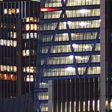 To evaluate the real-life coma of the Leica Nocticron 42.5mm f1.2 lens, I shot this night scene at every aperture setting using an Olympus OMD EM1 mounted on a tripod.The EM1 was set to its base sensitivity of 200 ISO and the lens focused on the center of the composition using magnified Live View assistance. The corner and center crops shown below were taken from the areas marked with the red squares, right, and presented at 100%.