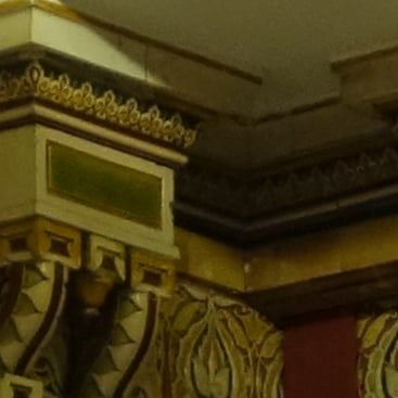The image above was taken with the Panasonic Lumix GM1 and the 12-32mm kit zoom set to 15mm for a 30mm equivalent field of view. Both cameras were set to f4 in Aperture priority mode. With the sensitivity set to 125 ISO the GM1 metered an exposure of 0.4 seconds. The GM1 JPEG file measured 8.47MB and, as usual, the crops are taken from the area marked by the red square. Before starting, it’s worth reminding ourselves about the differences in their sensors: the Lumix GM1 employs a Micro Four Thirds sensor measuring 17.3x13mm with 16 Megapixels, while the Sony RX100 II employs a 1in type sensor measuring 13.2×8.8mm with 20 Megapixels. As such the Sony is packing more pixels into a smaller area, so not only does this place greater demands on the optics, but also suggests its noise performance may not be as good. Starting at their lowest sensitivities, the GM1 and RX100 II share a similar amount of real-life detail in the crops below, but noise textures are creeping into both sets of crops as early as 200 ISO if you look carefully. As each camera increases its sensitivity though, it’s not the noise which becomes the problem, but the amount of detail left in the image. As early as 400 ISO, it’s clear the RX100 II is beginning to fight a losing battle with detail in the shadow areas: the fine pattern near the top of the pillars is beginning to be smudged-out on the Sony, while it remains quite clear on the Panasonic. At 800 ISO the Sony RX100 II has become quite mushy, and while there’s some noise textures on the Lumix GM1, its output is clearly far superior. At 1600 ISO the GM1 is beginning to lose detail in those patterns, but just look at it compared to the Sony RX100 II which is so much softer. By 3200 ISO those fine patterns have just about disappeared on the Sony, and while there’s a also great deal of loss on the GM1 at this point it remains comfortably ahead. This continues for the rest of the range, although I’d suggest the GM1 shouldn’t attempt 25600 ISO as it looks pretty horrible. So when comparing the same ISO values, I’d say the GM1 enjoys between one and two stops of an advantage over the RX100 II beyond their lowest sensitivities. This is a great result for the GM1, but doesn’t quite tell the whole story when it comes to real-life performance. If you’re using the GM1’s kit lens, you’ll be working with an aperture of f3.5 at 24mm equivalent, slowing to f5.6 at 64mm equivalent. Meanwhile the Sony RX100 II’s built-in lens starts at f1.8 at 28mm equivalent and slows to f3.5 at 64mm equivalent (when matching the GM1’s kit zoom at its maximum focal length); the RX100 II then continues to slow down to f4.9 at its longest focal length. So when the GM1 kit and RX100 II are both at their widest focal lengths, the Sony lens is gathering four times as much light, allowing it to use a sensitivity two stops lower, such as 100 ISO when the GM1 is forced to use 400 ISO to achieve the same shutter speed. When both are zoomed to the GM1’s kit lens maximum focal length, the RX100 II’s lens gather’s just over twice as much light, again allowing it to use lower sensitivities to achieve the same shutter under the same conditions – so again when the GM1 is at 400 ISO, the RX100 II could be at 160 ISO. So the Lumix GM1’s larger sensor and pixel pitch may give it a one to two stop advantage in noise levels, but the RX100 II’s brighter lens essentially claws back any benefit with roughly the same advantage on light gathering power. What this means is if you take both cameras out and shoot under the same conditions with the same shutter speeds, the resulting image quality will be pretty similar. The GM1’s bigger sensor will only give you lower noise levels than the RX100 II when both are sharing the same aperture, and that means equipping the GM1 with something brighter than the kit zoom. As an interchangeable lens camera, you can of course fit any Micro Four Thirds lens onto the GM1, but I wonder how many will do so. The bottom line is the GM1 will deliver comfortably lower noise than the Sony RX100 II when both are using the same ISO values, but the Lumix is likely to be using higher ISOs if fitted with the kit zoom, which in turn erodes any advantage. But equally it would be unfair not to commend Panasonic for essentially delivering the smallest camera with the best noise levels when considering ISO values alone. Given the same ISO value, the GM1 is much cleaner than the RX100 II, which in turn is cleaner than the Canon S120, and that’s a good result. But how much of what we’re comparing below is down to image processing and noise reduction? To find out, we need to compare RAW files processed with the same settings. I’ll do just that on my Panasonic Lumix GM1 RAW noise page just as soon as the GM1 is fully supported in Adobe Camera RAW. In the meantime, please check out my broad range of Panasonic Lumix GM1 sample images, or skip straight to my verdict!
