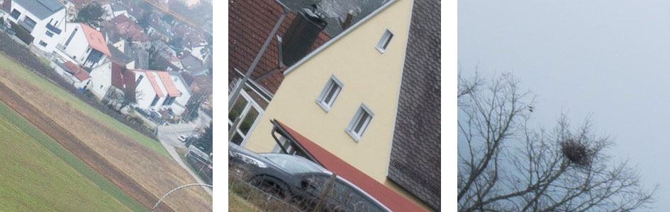 Following is an overview of the wide-open performance at different focal lengths. You can jump to the detailed results at different apertures by clicking on the crops of the respective focal length. As usual I have selected the diagonal that provided the better corner results as almost any lens is a bit decentered. During the period of testing atmospheric conditions were dismal. To compensate a bit for the fog I increased contrast for the center crops. The large originals are unretouched.