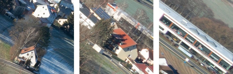 The Siemens-star test-targets are shot at a distance of 45x focal length (i.e. at around 1m). But performance of lenses also depends on the shooting distance. Therefore I present another series of test-shots of a city around 1 km away. Processing was done in Lightroom 8/CRAW 11 from RAW to Adobe Color profile with the lens-profile automatically applied – as far as Adobe’s RAW converter recognizes it (see above). Noise-reduction is set to 0, sharpening to 50/0.5/36/10, with no extra tone, color, or saturation adjustment. I used autofocus at the largest aperture and did not change focus for other apertures. All shots were made at ISO 100 and image stabilization switched off.