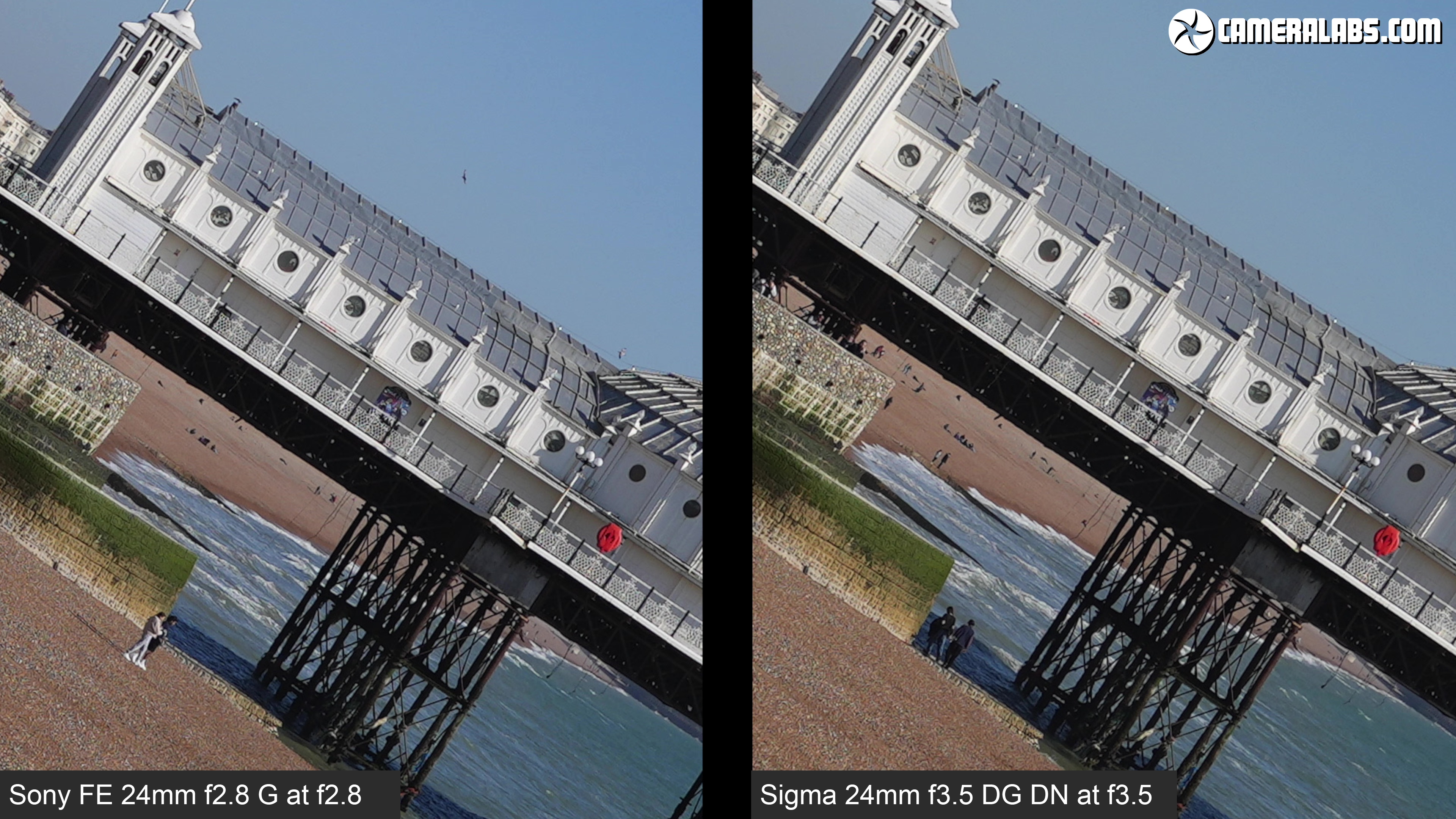 Above: With the Sony 24 2.8 on the left and the Sigma 24 3.5 on the right, showing magnified views of their central areas, you’ll see both perform very well at their respective maximum apertures, although again the Sigma’s view is a little tighter.