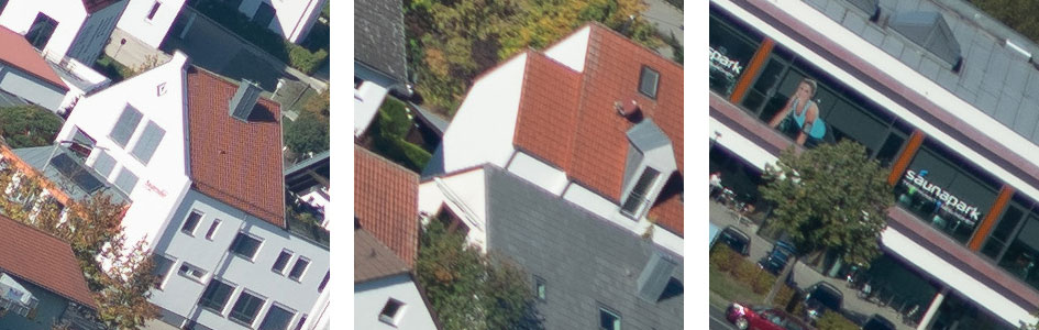 The Siemens-star test-targets are shot at a distance of 45x focal length (i.e. at around 4m). But performance of lenses also depends on the shooting distance. Therefore I present another series of test-shots of a city around 1 km away. Processing was done in Lightroom 8/CRAW 11 from RAW to Adobe Color profile with the lens-profile for distortion and vignetting automatically applied. Noise-reduction is set to 0, sharpening to 50/0.5/36/10, with no extra tone, color, or saturation adjustment. I used autofocus at the largest aperture and did not change focus for other apertures. All shots were made at ISO 100 and image stabilization switched off.