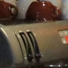 Below are 100% crops from our first Handheld Twilight sample, which under the conditions of the day automatically selected a sensitivity of 320 ISO. Like the Cyber-shot HX5 before it, the Handheld Twilight samples were often darker than shots taken in other modes under the same conditions, so for comparison we took an additional shot in Program mode with -0.3EV compensation. The PASM modes only offer 1EV increments for ISO settings though, so we selected 400 ISO as the closest match.