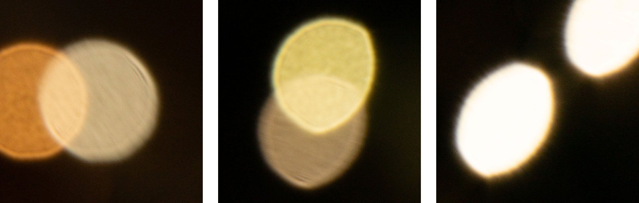 This test is for the rendering of point-light sources in an out-of-focus background. The circle of confusion that is produced by the test is pretty indicative of Bokeh performance (in the background) and light fall-off. Ideally the out-of-focus image of the point-light is evenly lit and perfectly circular, with no “onion-rings”, and without coloration. Large aperture lenses normally produce an effect known as “cat’s eye” the further away from the optical axis the point-light is projected. This is due to optical vignetting in the lens barrel when light enters the lens from an angle.