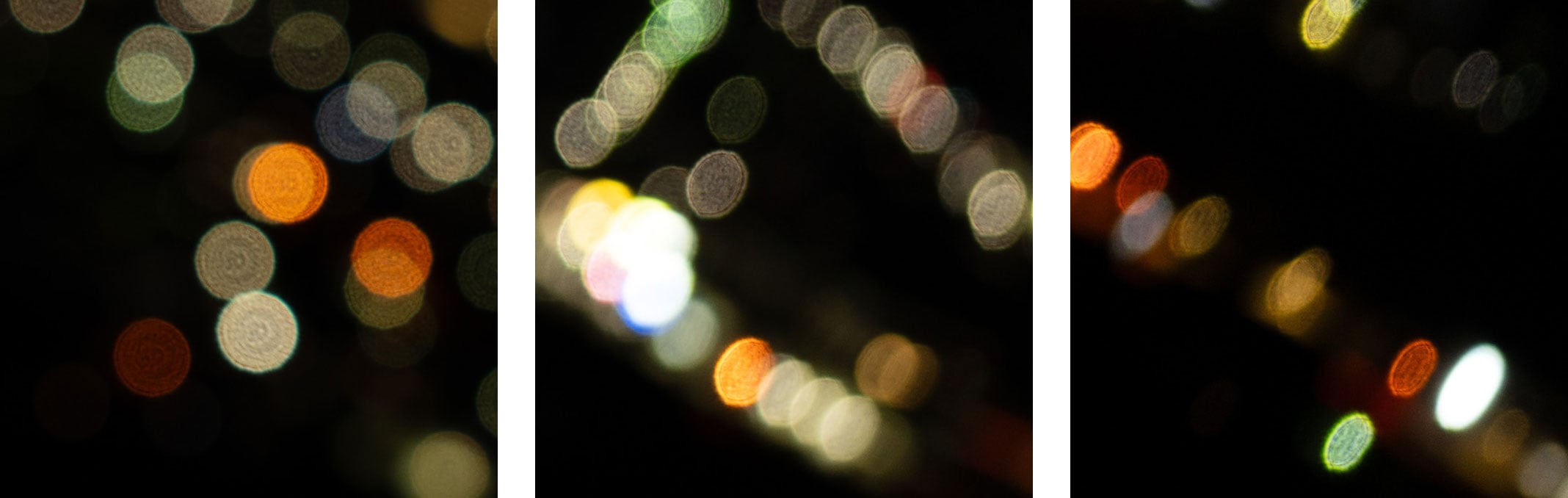 This test is for the rendering of point-light sources in an out-of-focus background. The circle of confusion that is produced by this test is pretty indicative of Bokeh performance (in the background) and light fall-off. Ideally the out-of-focus image of the point-light is evenly lit and perfectly circular, with no “onion-rings”, and without coloration. Large aperture lenses normally produce an effect known as “cat’s eye” the further away from the optical axis the point-light is projected. This is due to optical vignetting in the lens barrel when light enters the lens from an angle.