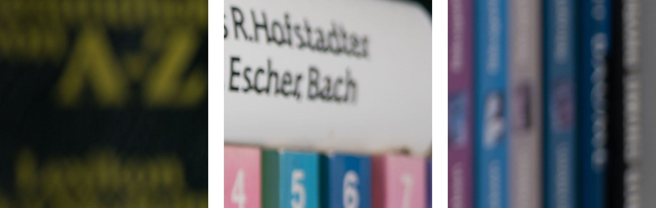 Now let’s see how this analysis of out-of-focus point-light sources translates into Bokeh-performance shooting a book-shelf. Again, the crops of the foreground, the middle-ground, and the background below the main image are resized to make them comparable across all my reviews.