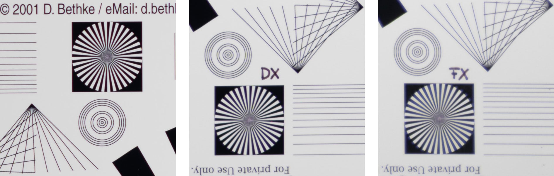 Above: Voigtländer 35mm f2 APO-Lanthar; 100% crops from the FF/FX-corner at f2.0 (left), f2.8 (middle), f4.0 (right)