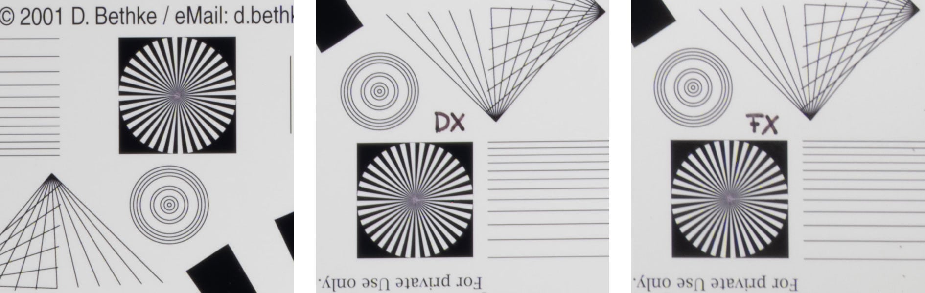 Let’s see how this theoretical performance translates into real life results in the sharpness test based on Siemens-stars shot on a 45MP Nikon Z8 set to 16 image pixel shift shooting. The 16 individual images for each shot were merged in NX Studio 1.9.1 into a 180MP RAW file and further processed in Lightroom 14.5/CRAW 17.5 to Adobe Color profile with the lens profile compensating CA. Noise-reduction was set to 0, sharpening to 50/1/36/10, with no extra tone, color, or saturation adjustment. White-balance was adjusted to a neutral white and I did some exposure compensation to make the brightness of all crops match. So you will not see light fall-off in the corners. I also focused separately for the center, the DX-corner, and FX-corner which eliminates any effect field-curvature might have. If you want to know more about the advantages and perils of pixel shift shooting head over to page 2 of my Tamron 28-75mm f2.8 Di III G2 Nikon Z review.