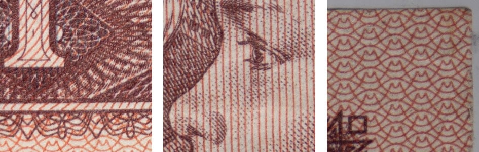The Voigtländer 35mm f2.0 APO-Lanthar achieves a maximum magnification of 1:6.6 at minimum object distance. The following images were shot at 1:6.7 where the area of sharp focus is just 160 x 240mm. The images shown below are 100% crops from 0mm, 11mm, and 19mm off the center of the sensor respectively. The shots were not corrected for distortions or light fall-off.