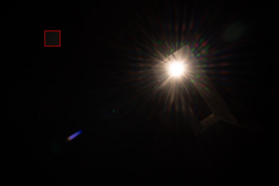 Catching a strong light-source shining directly into the lens is always a risky business: it could produce strange colorful ghost-images or reduce contrast considerably through flare and glare. The appearance of flare and ghosting depends on factors like the aperture and the angle of the light hitting the lens. So to judge the proclivity of the Voigtländer 35mm f2 APO-Lanthar for these artifacts I went through a series of well calculated shots against a strong light source to provoke glare and ghosting. The lens hood was mounted in all shots. Following are some of the more extreme example results. The little bright square inset in the upper left shows the respective area with an exposure compensation of +3 EV to make it easier to see which levels of black the lens renders at that point: