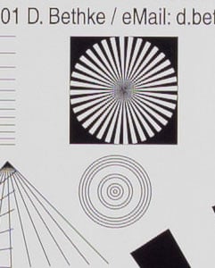 From the charts the new Zeiss should perform on a higher level than the new Nikon 58/1.4G regarding overall contrast and sharpness (contrast with finer details) across the sensor. Even the 40 lp/mm curve of the Zeiss (showing the contrast at very fine details is better /higher than the 30 lp/mm curve from the Nikon. But it looks like the Zeiss exhibits more astigmatism at very fine details than the Nikon. Let’s see how this theoretical performance translates into real life results in the sharpness test based on Siemens-stars – and how the performance increases when you stop this lens down.