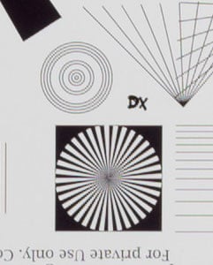 This test is for the rendering of point-light sources in the background. The circle of confusion that is produced by this test is pretty indicative of Bokeh performance (in the background) and light fall-off. Ideally the out-of-focus image of the point-light is evenly lit and perfectly circular, with no “onion-rings”, and without coloration. Large aperture lenses normally produce an effect known as “cat’s eye” the further away from the optical axis the point-light is projected. This is due to optical vignetting in the lens barrel when light enters the lens from an angle. For an explanation of this effect have a look over at toothwalker.org.