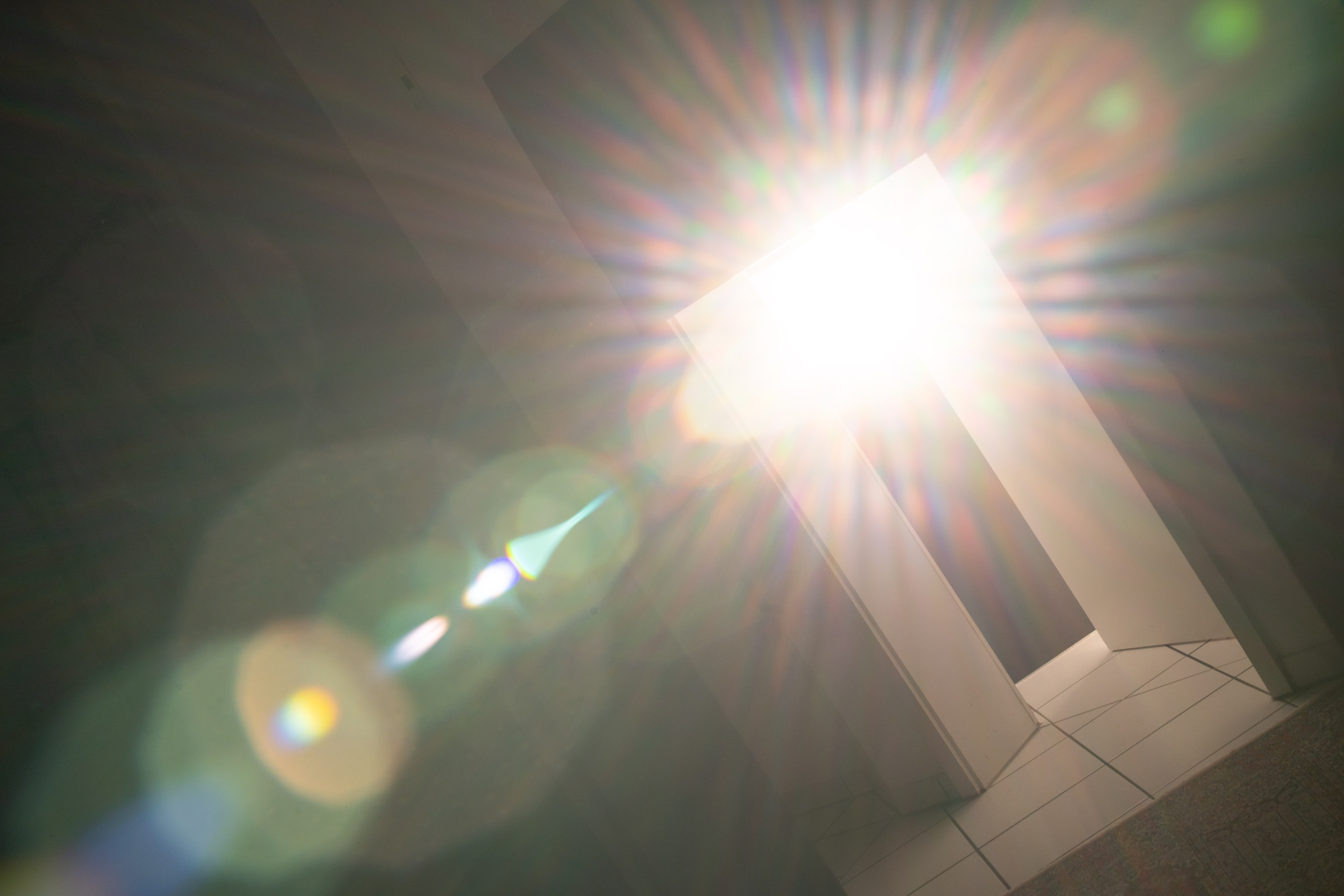 Above: Flare and ghosting. Strong light hitting the Mitakon 50mm f0.95 III at f11; click image for 4k version or here for +3 EV exposure compensation